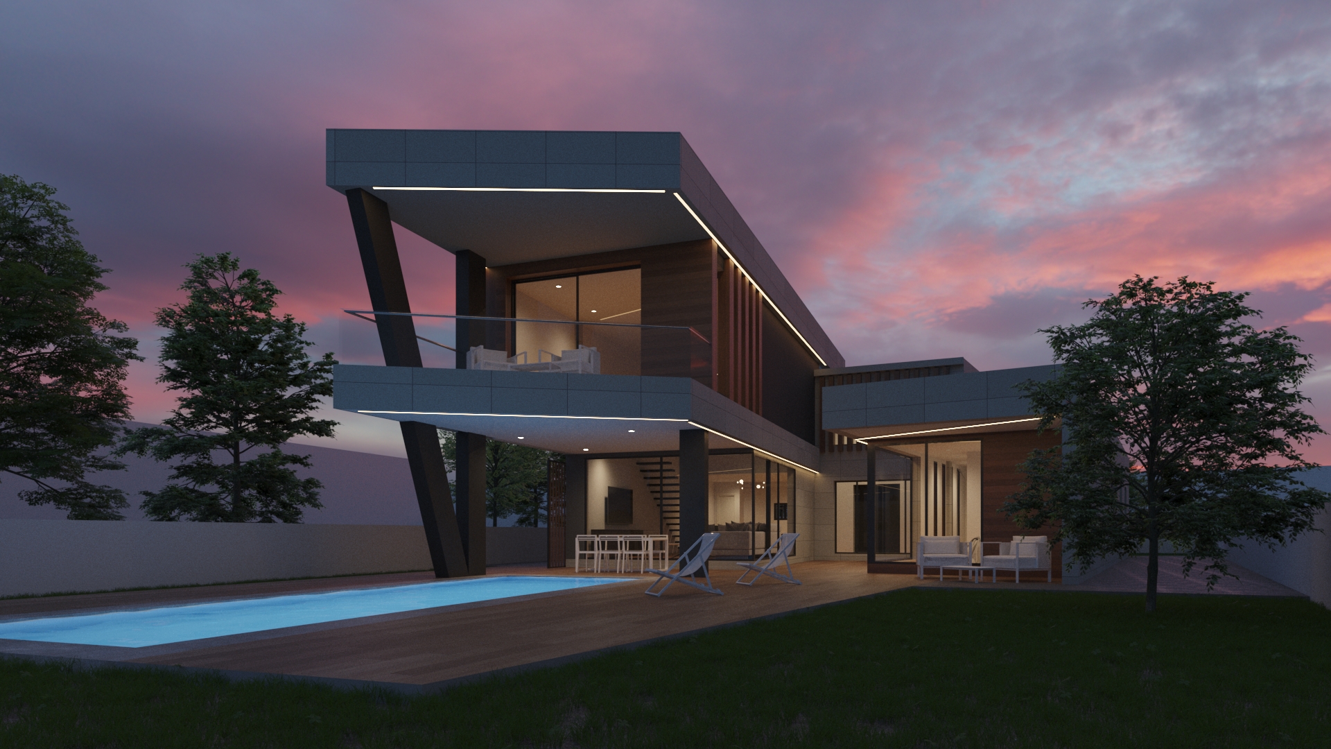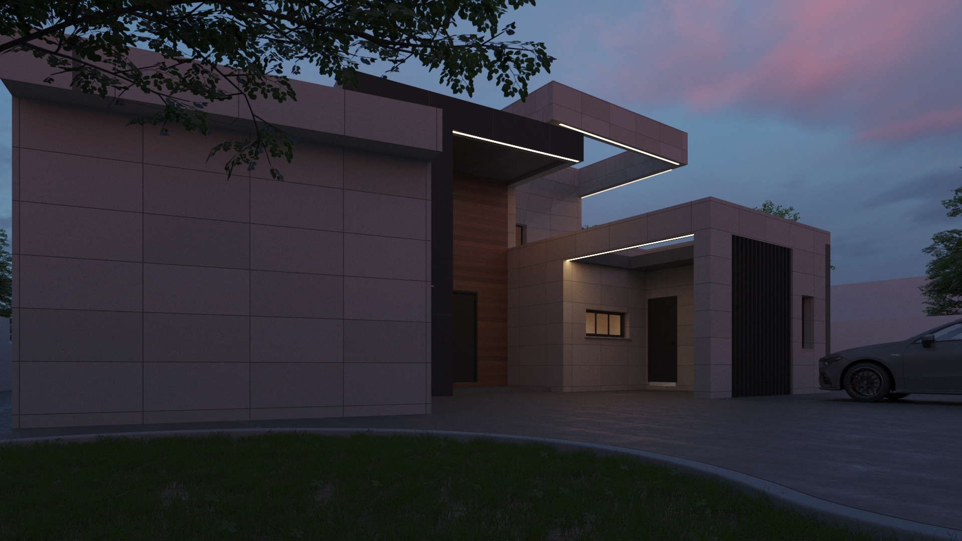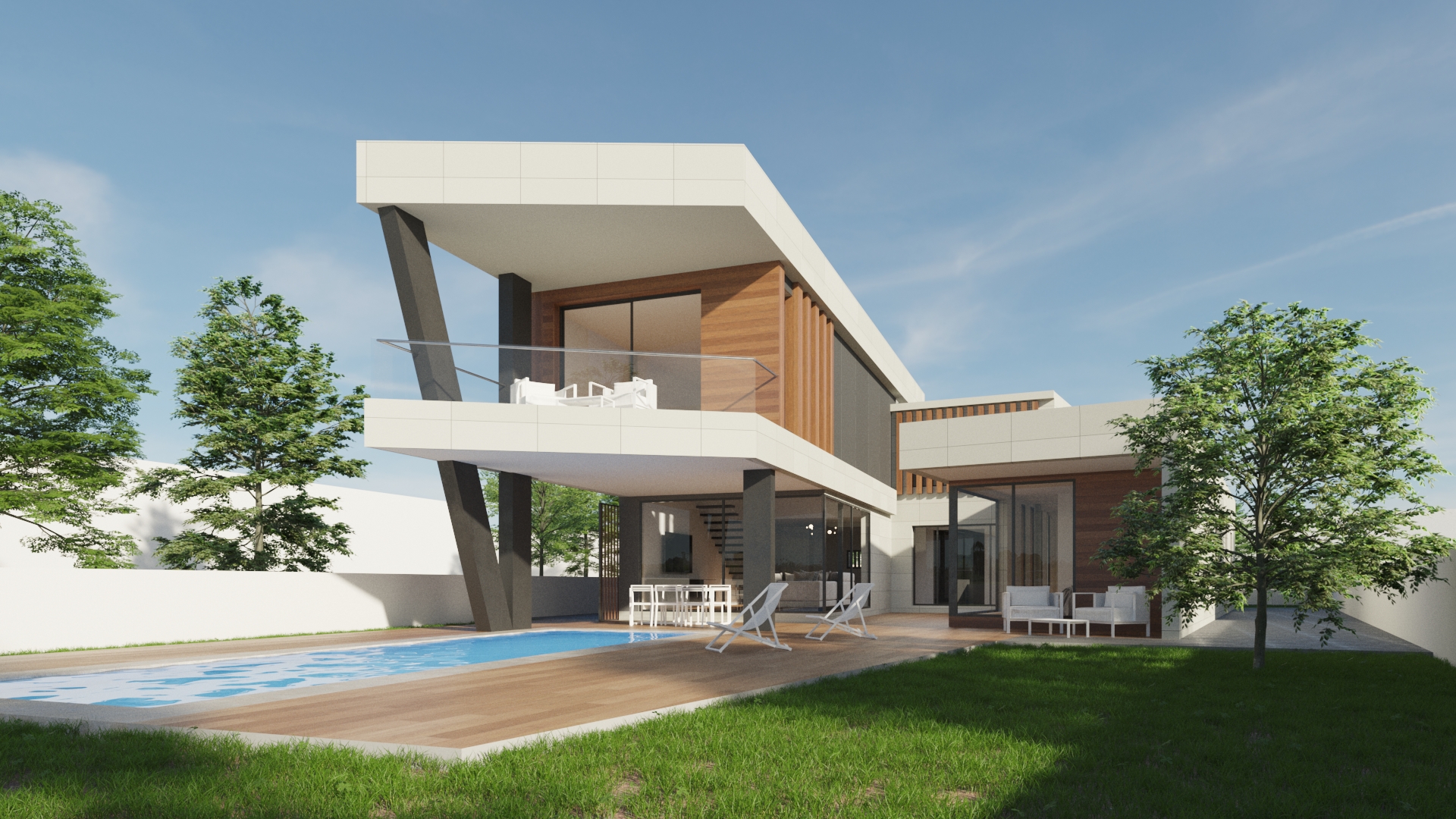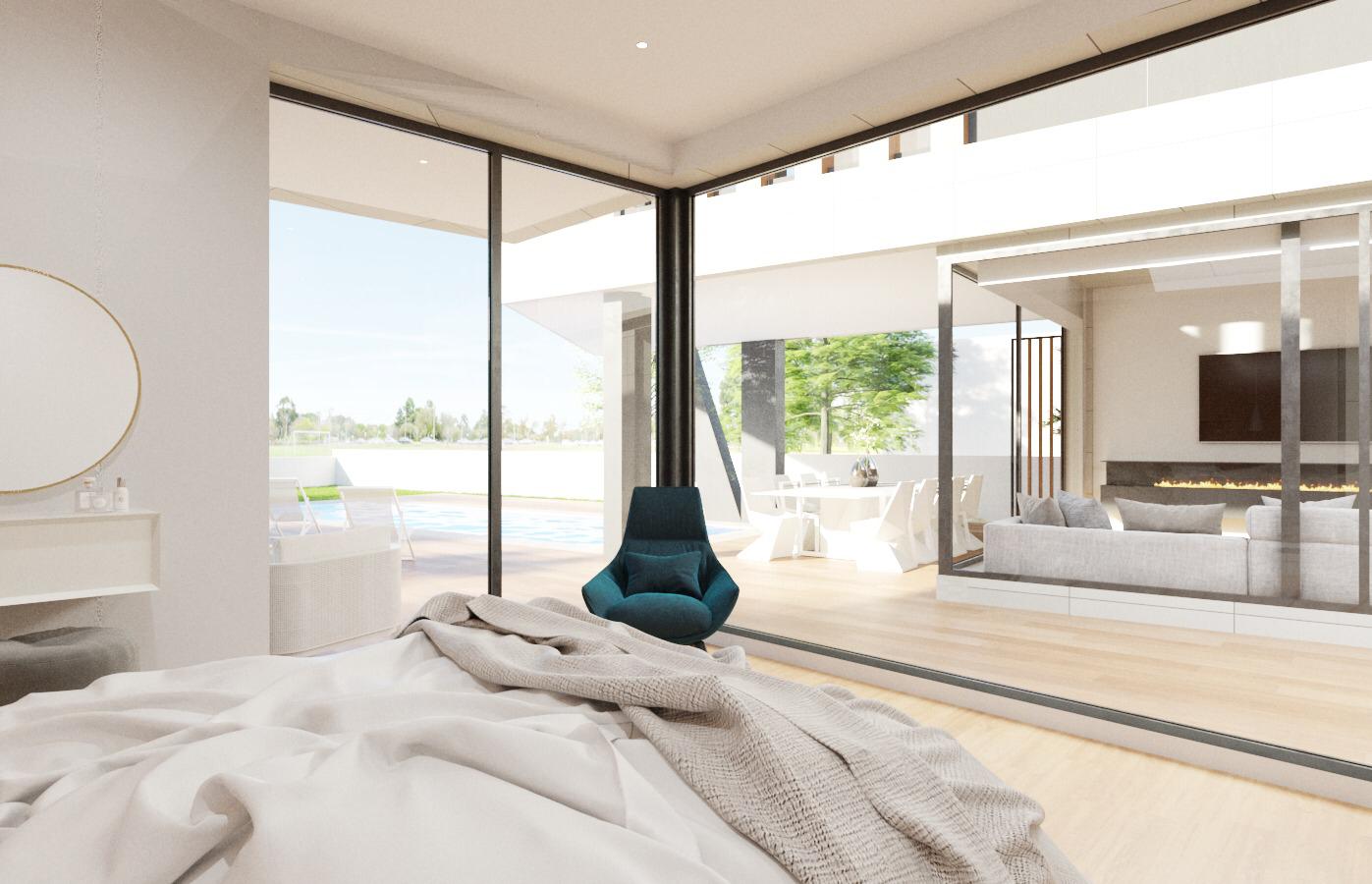 Vivienda resuelta con juego de cubiertas a diferentes alturas. Es tan importante una buena distribución para que una vivienda sea funcional como la iluminación natural de los mismos. Esto último ha sido el aspecto fundamental para la concepción del diseño donde hemos obtenido el máximo partido a la orientación de la parcela en la que se ubica. Zonas de día como salón comedor, cocina y espacios habitables exteriores obtienen un protagonismo especial convirtiéndose en los elementos principales donde predomina un ambiente de serenidad, paz y relajación. Los espacios que carecen de luz no pueden considerarse espacios.