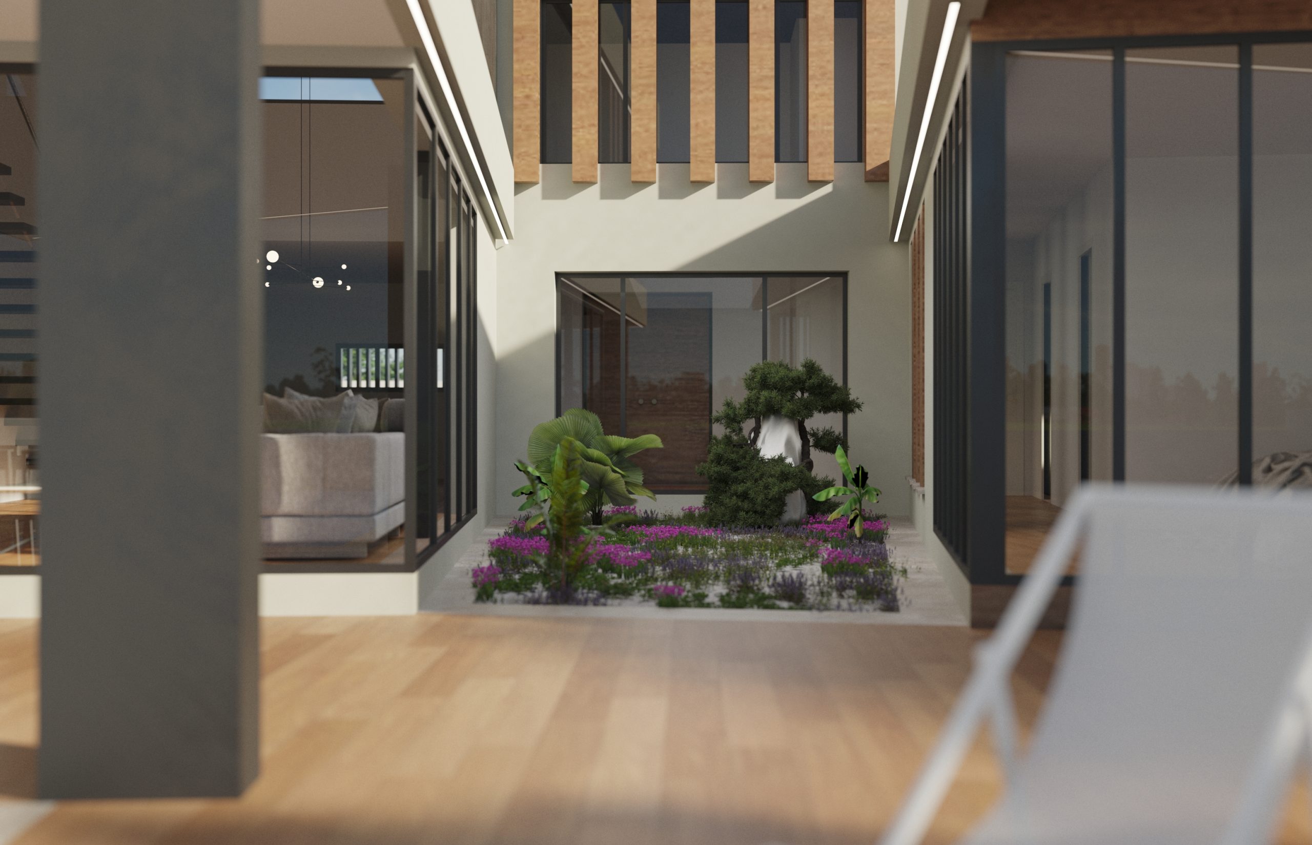 Con el encargo de nuestro proyecto «Casa Patio», en Miguel TuArqutitectura hemos recibido una inyección de motivación e ilusión. Muy satisfecho con el resultado obtenido en el diseño de una vivienda estudiada hasta el más mínimo detalle. Se trata de una distribución en planta con forma de H intencionada para que tanto la pieza constituida por la zona de noche como la formada por la zona de día se abran a un espacio interior con mucha privacidad, El Patio. La zona de dormitorios y la zona de salón cocina se unen por un elemento de gran importancia como es el vestíbulo resuelto a doble altura que le da entidad a la entrada de esta maravillosa