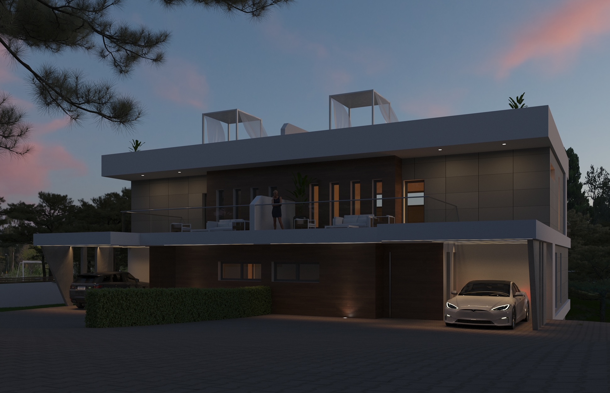 Proyecto de dos Viviendas Pareadas ubicadas en un enclave natural precioso. Se integran de manera armoniosa con el entorno ofreciendo unas vistas espectaculares sin competencia en la zona de El Rompido.